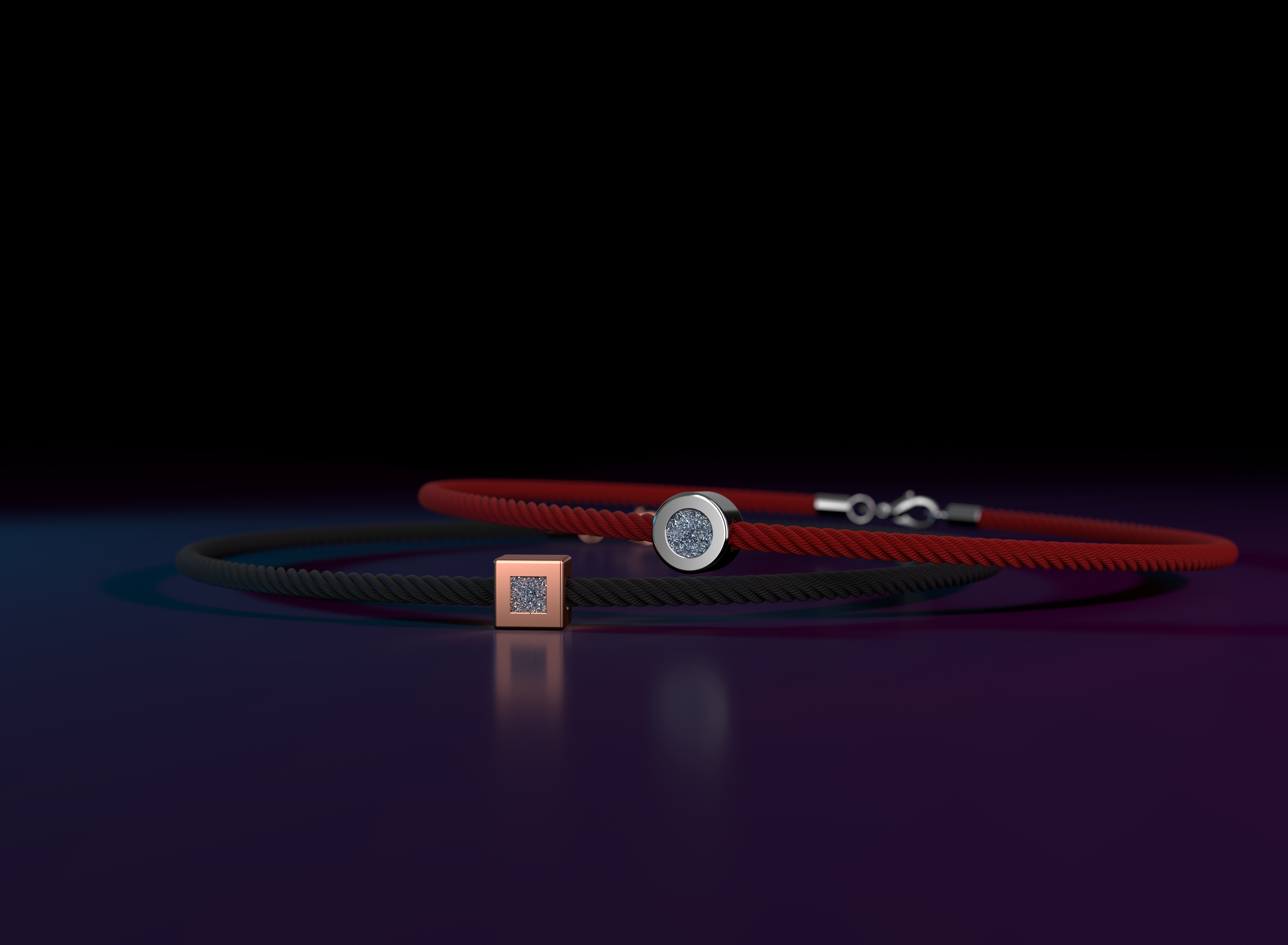 Inspired by childhood games of fitting shapes into their perfect place, this collection reimagines geometry with rare crystalline Osmium