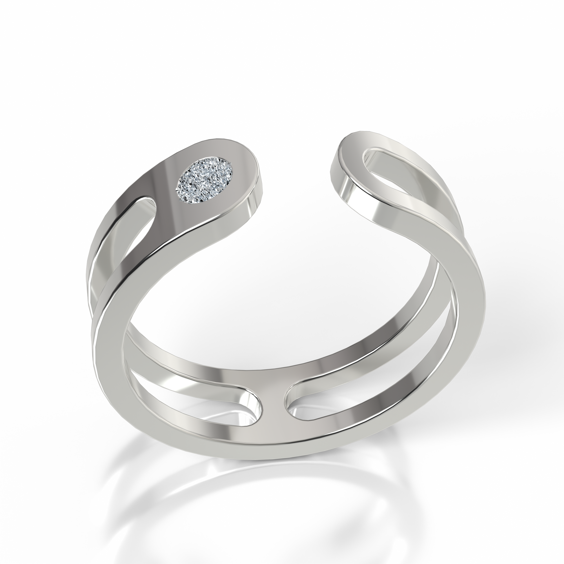 La bague Icon se distingue par sa forme arrondie et ouverte, conçue pour un ajustement facile et un confort au quotidien. Fabriquée avec soin dans un métal précieux de haute qualité, elle est ornée d'une discrète incrustation d'osmium, un élément rare reconnu pour son éclat unique.