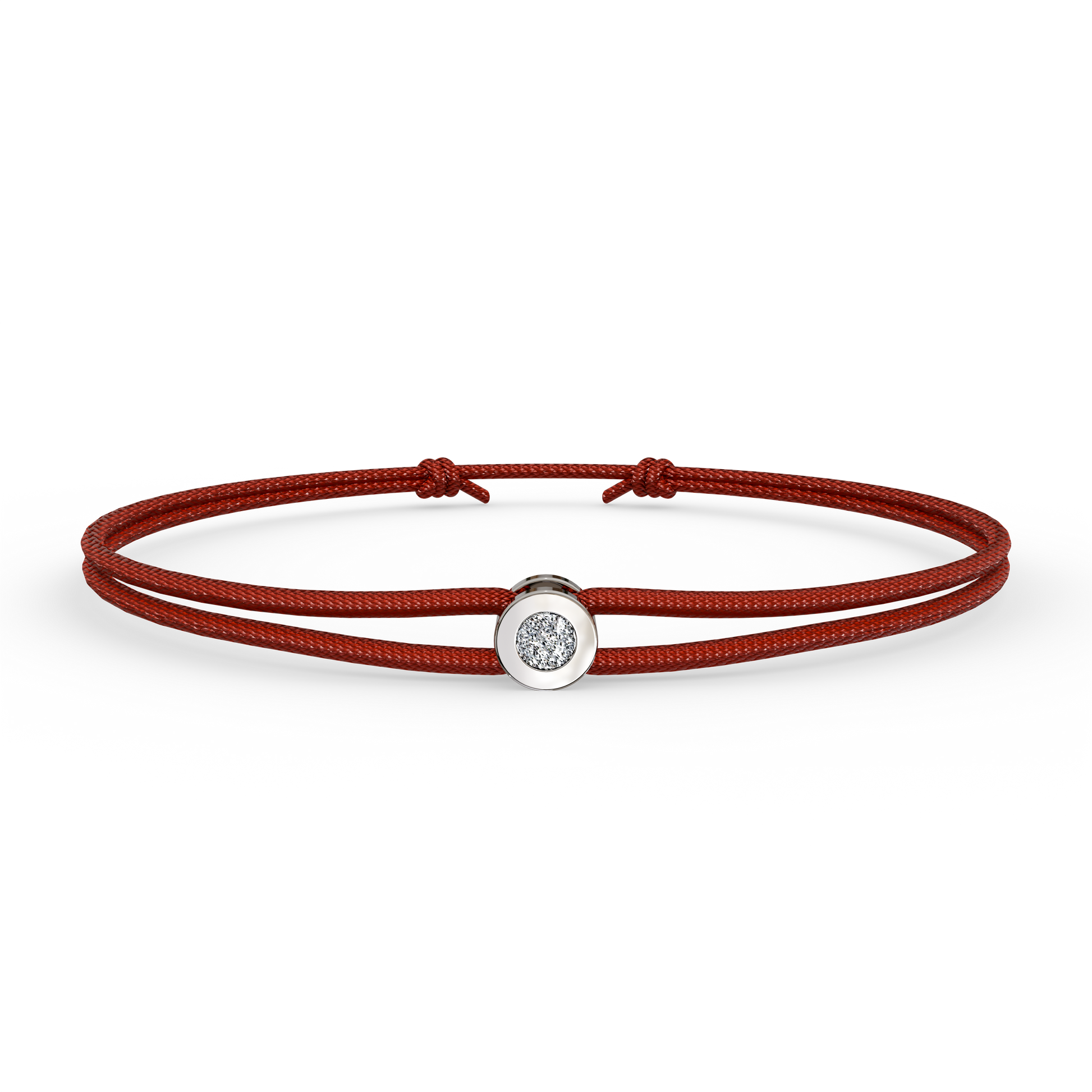 Un simple cercle d'osmium serti dans un bracelet en cordon fin. Le cercle symbolise l'éternité et le lien, le flux continu de la vie, ininterrompu et intemporel.